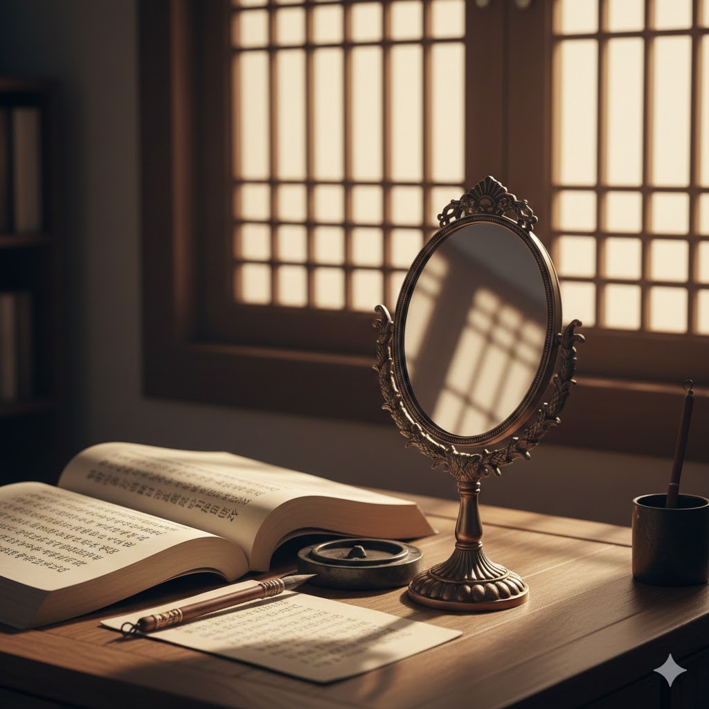 이미지 설명: 명심보감(明心寶鑑)은 이름 그대로 '마음을 밝히는 보배로운 거울'이라는 뜻이에요.