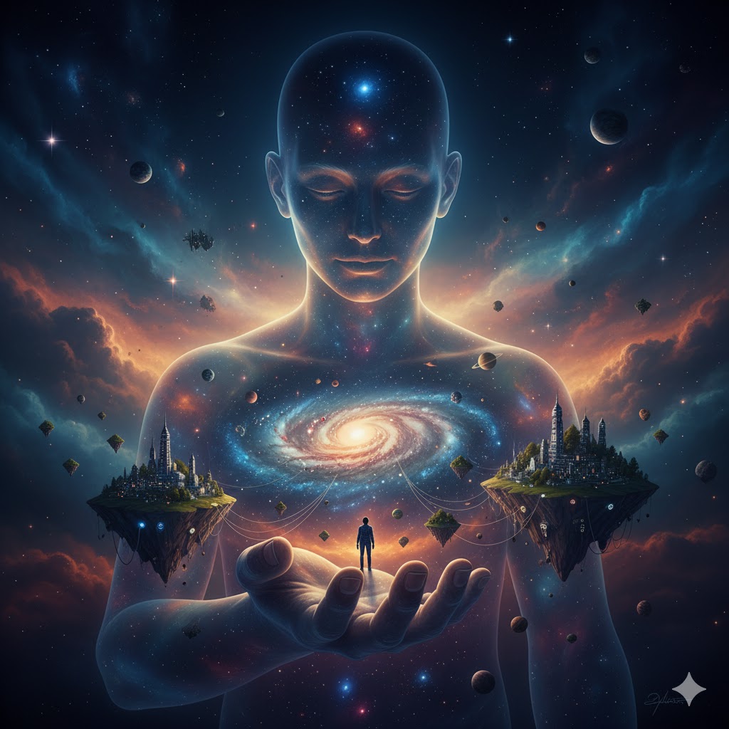 우리가 거인의 세포일지도 모른다는 역설"우리가 보고 있는 이 거대한 우주가 사실은 거인의 몸속에 있는 작은 세포 하나에 불과할지도 모른다"는 문장은 이 책의 관통하는 핵심적인 세계관이에요.