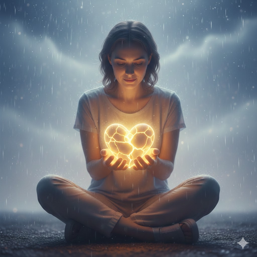 빛나는 갈라진 마음: 손에 들고 있는 하트의 균열은 우리가 가진 상처와 약함을 의미해요.