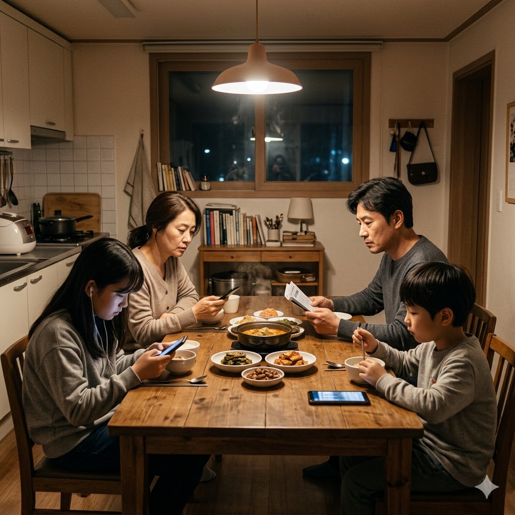 대화가 사라진 식탁 위에 남은 건 정적뿐이에요.